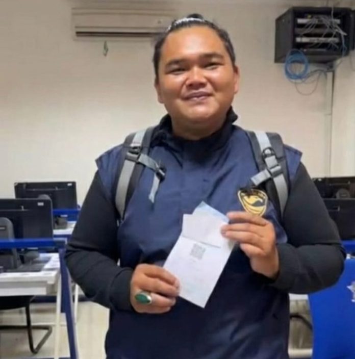 “Selamat siang. Perkenalkan nama saya Muhammad Habibi. Saya telah mengerjakan teori ujian SIM C dengan nilai 84,62. Terima kasih,” ujarnya.