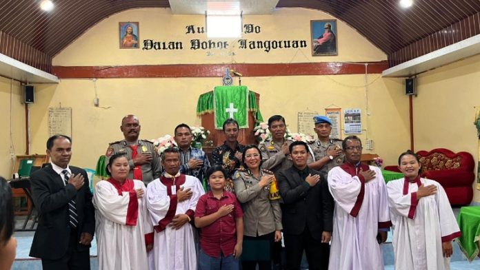 PARAMETERTODAY.COM, Samosir โ€“ Kapolres Samosir AKBP Rina Sry Nirwana Tarigan, S.I.K., melaksanakan kunjungan sekaligus mengikuti Ibadah Minggu Gereja bersama umat HKBP Bonandolok Desa Bonan Dolok Kecamatan Sianjur Mulamula Kabupaten Samosir, Minggu (8/2/2026) sekitar pukul 11.00 WIB.