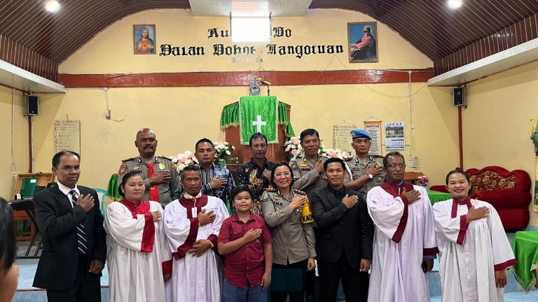 Sementara itu, dalam ramah tamah bersama jemaat dan masyarakat, Kapolres Samosir AKBP Rina Sry Nirwana Tarigan, S.I.K., menyampaikan pesan kamtibmas serta arahan kepada umat dan warga desa agar senantiasa menjaga kenyamanan, ketertiban, dan keharmonisan hidup bermasyarakat.