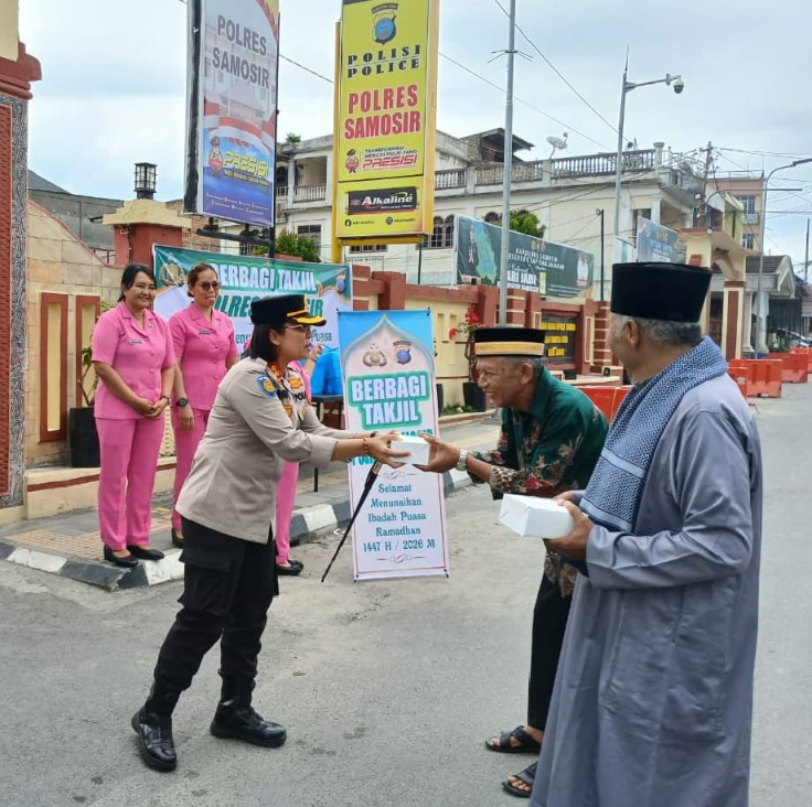 โ€œTakjil yang dibagikan sebanyak 100 bingkisan yang diproduksi oleh Bhayangkari Cabang Samosir. Ini adalah wujud iman Polres Samosir dalam bekerja dan melayani masyarakat,โ€ pungkasnya.