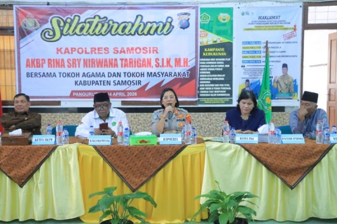 PARAMETERTODAY.COM, Samosir— Polres Samosir terus memperkuat sinergi dengan seluruh elemen masyarakat dalam menjaga keamanan dan membina generasi muda. Hal ini terlihat dalam kegiatan silaturahmi yang digelar Kapolres Samosir bersama tokoh agama dan tokoh masyarakat di Kantor Kementerian Agama Kabupaten Samosir, Selasa (14/4/2026).